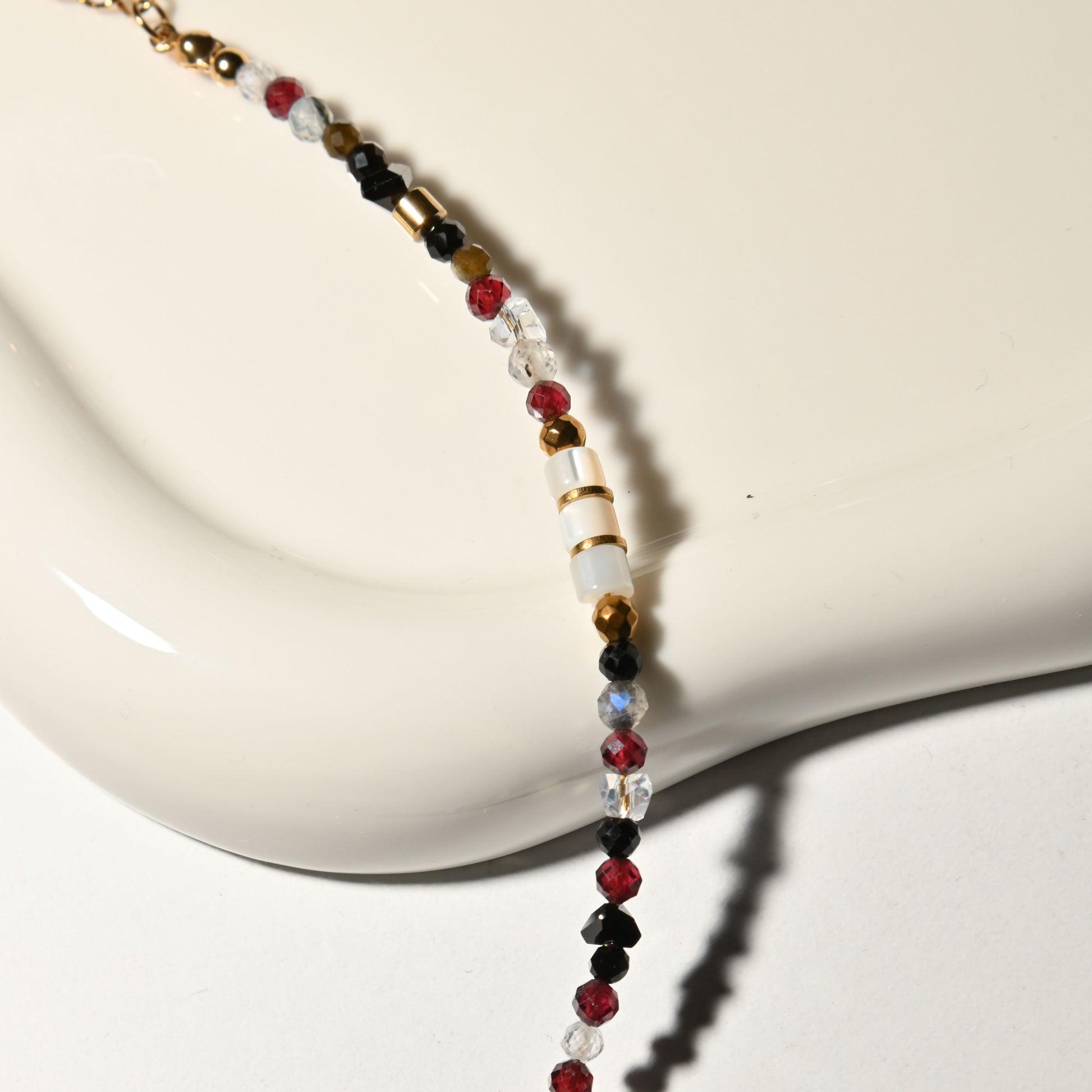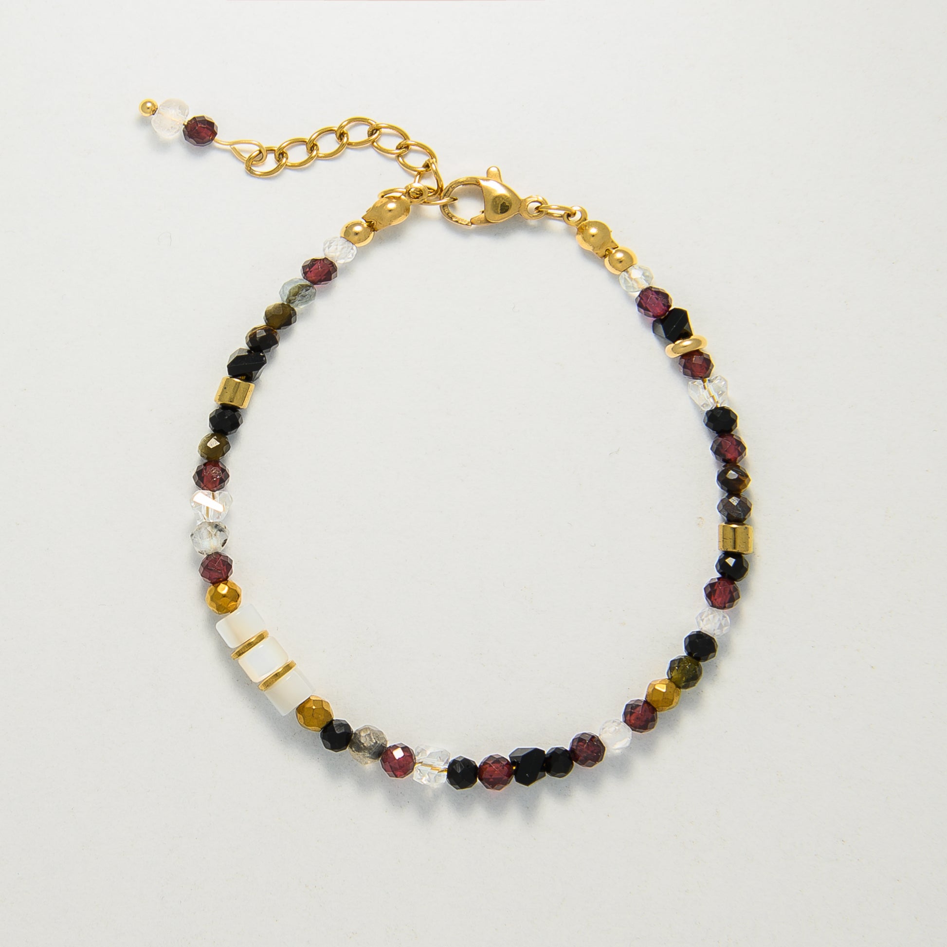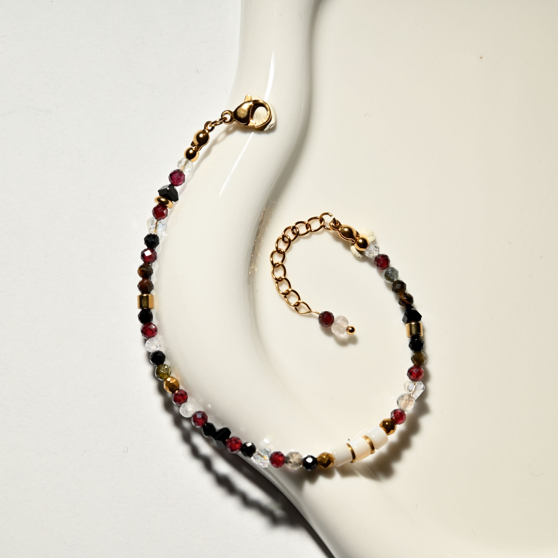 Планинският кристал внася яснота и фокус, а седефът омекотява енергията с хармония и вътрешен мир.